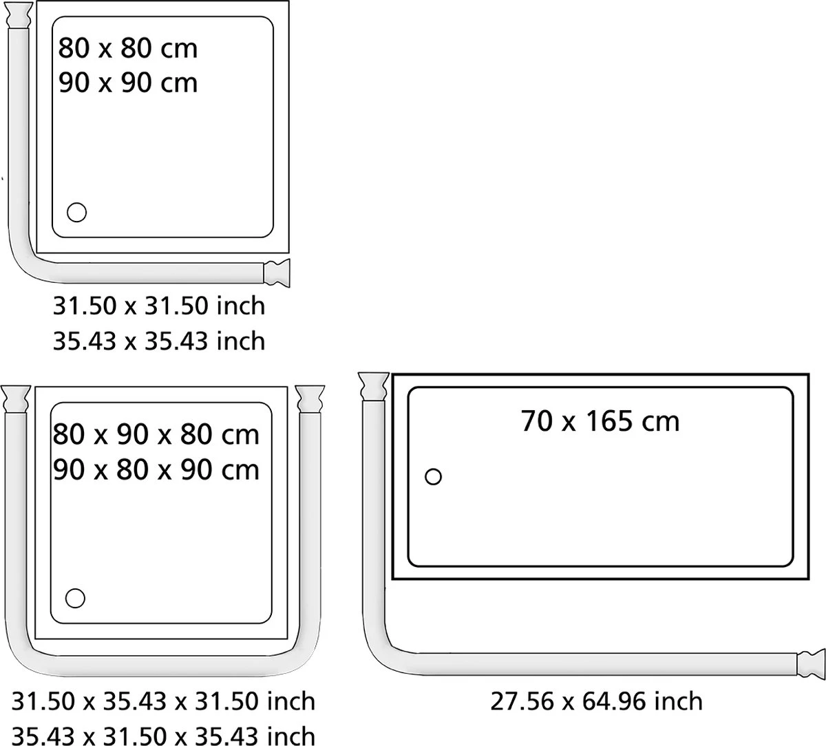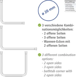 De douchestang kan eenvoudig in drie verschillende combinaties worden samengesteld en is dus geschikt voor: