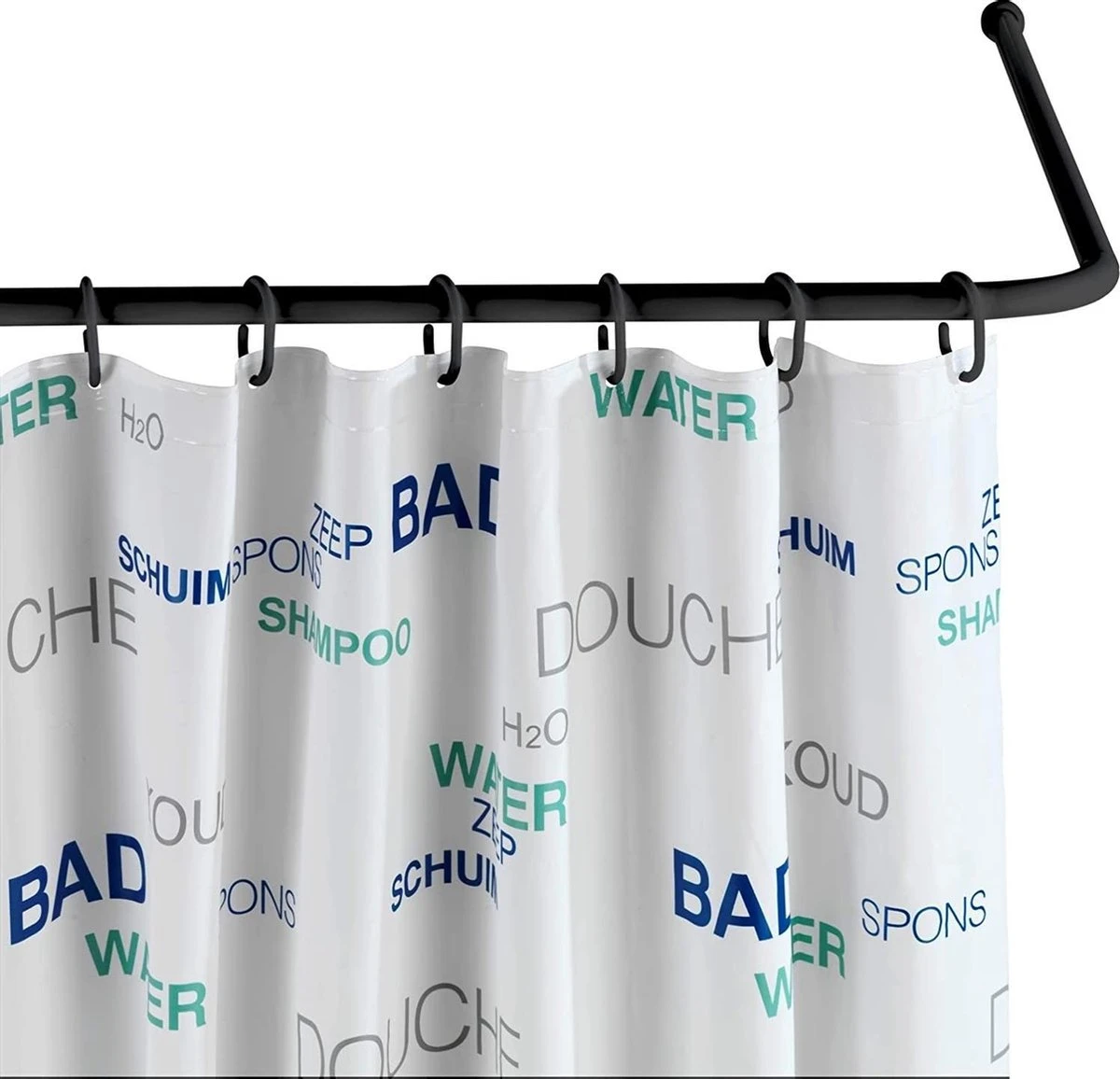 Deze aluminium douchegordijnstang in trendy zwart kun je in L-vorm of U-vorm ophangen en is ideaal voor bij je bad of douche.