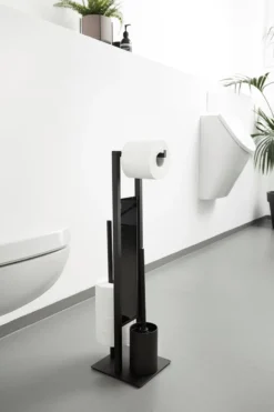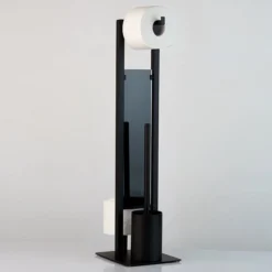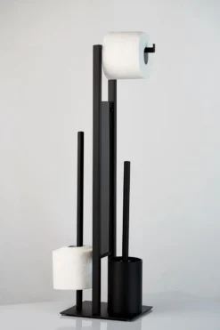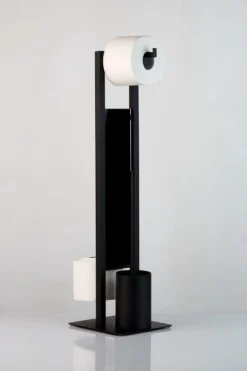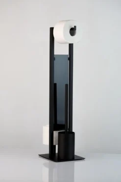 Deze toiletbutler in industrieel design maakt indruk met een diepzwart, mat oppervlak en zet decoratieve designaccenten in badkamer en toilet.