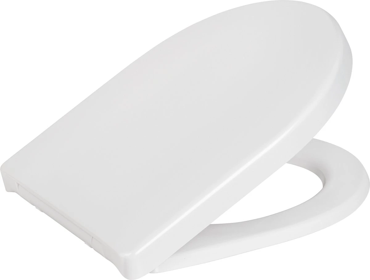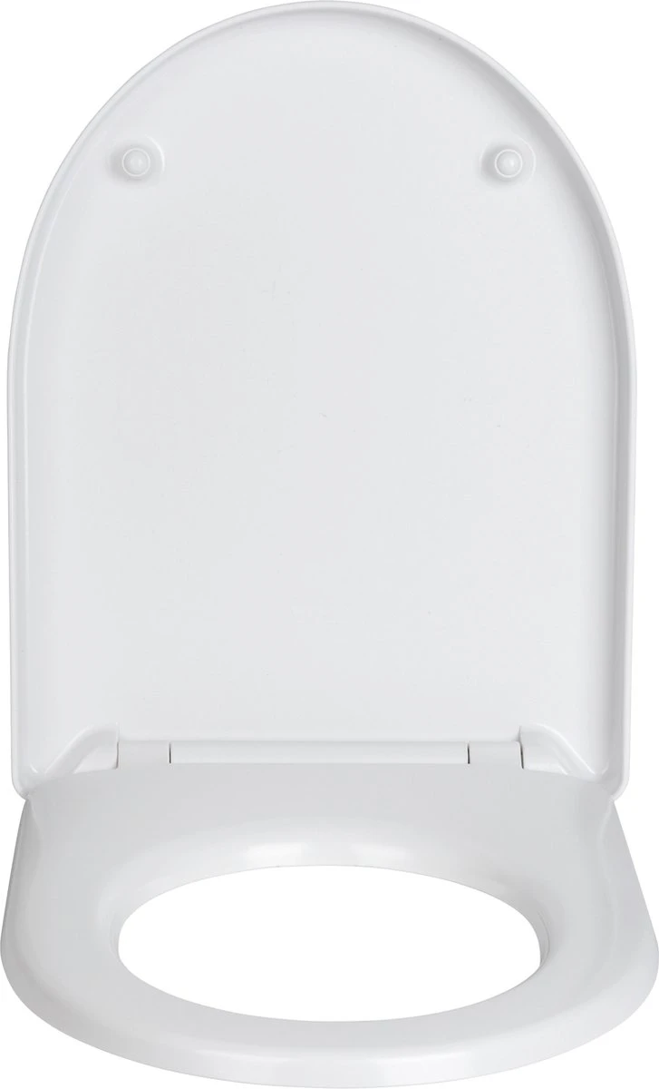 De witte toiletzitting Sindia uit stevig Duroplast is een WC bril met een D-vorm.