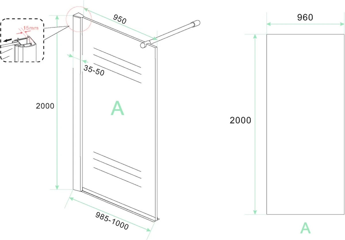 | Uitvoering douchewand | Vaste wand |