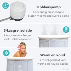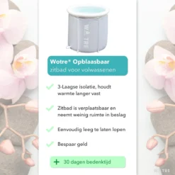 Ben je opzoek naar een zitbad? Je hebt zin om een avond heerlijk te ontspannen maar je hebt geen bad, wat nu? Met dit zitbad van WOTRE® is je probleem opgelost! Je kunt waar en wanneer je wilt lekker in dit heerlijke bad gaan zitten. Heb je zin om heerlijk te ontspannen en weg te dromen in een warm bad? Of heb je zin om het avontuur aan te gaan en net als Wim Hof in een ijskoud bad? Dit kan met het zitbad van WOTRE®.